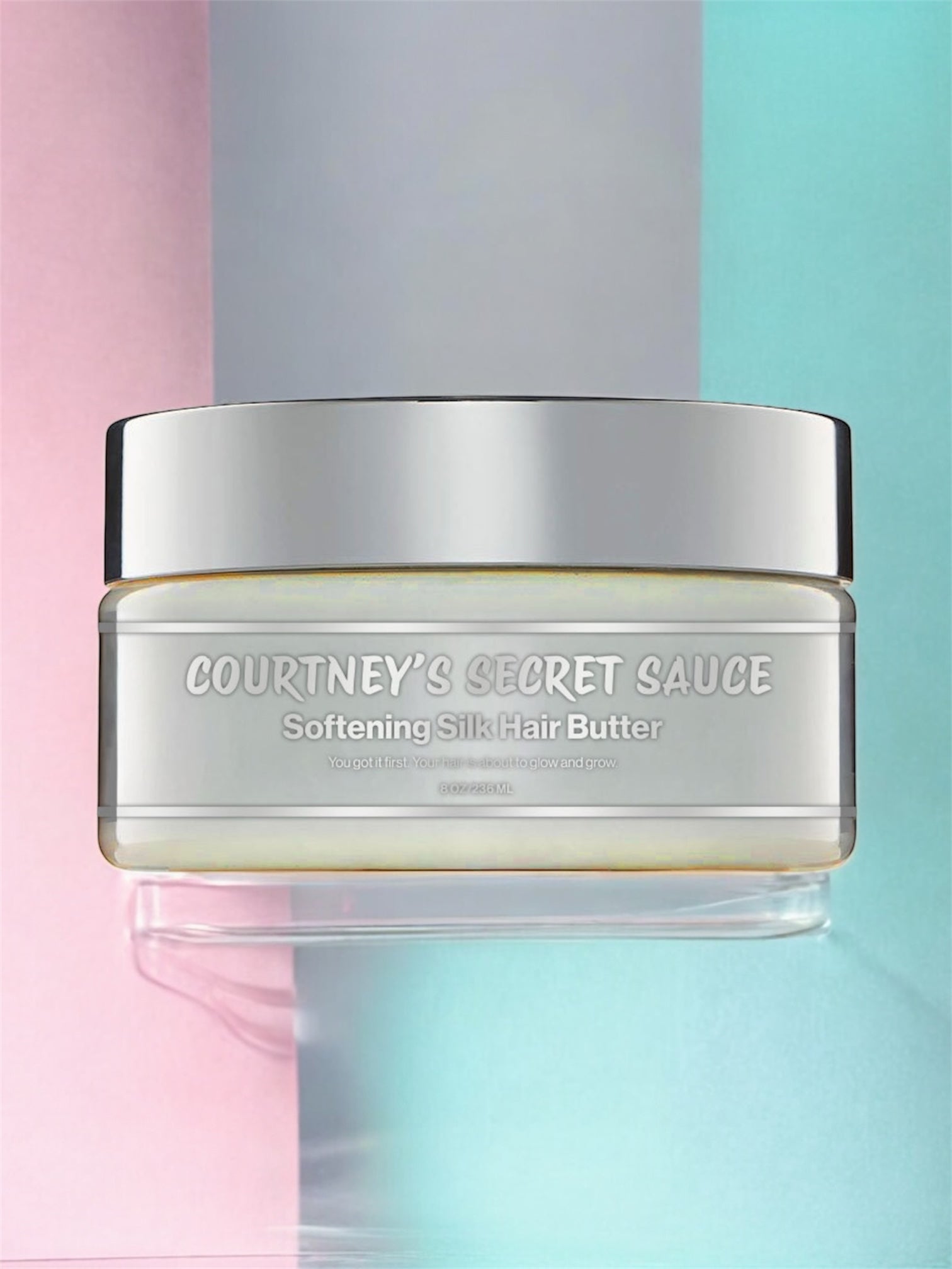 Transform your hair with Courtney’s Secret Sauce Softening Silk Hair Butter. This indulgent blend nourishes deeply, strengthens every strand, enhances shine, and improves hair texture by boosting integrity and elasticity. Infused with Murumuru, Shea, Mango, and Cupuaçu Butters, it leaves hair irresistibly soft, manageable, and luxuriously touchable. Specially formulated to melt effortlessly into hair, it delivers intense hydration without heaviness, perfect for daily use.